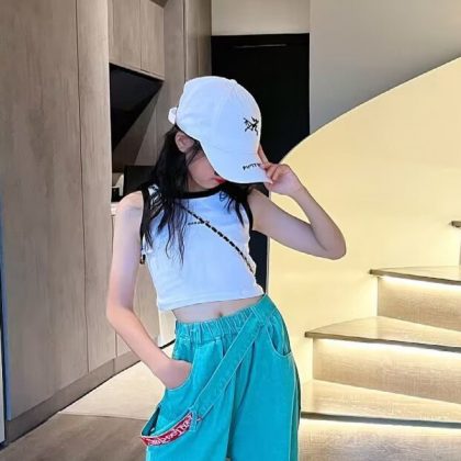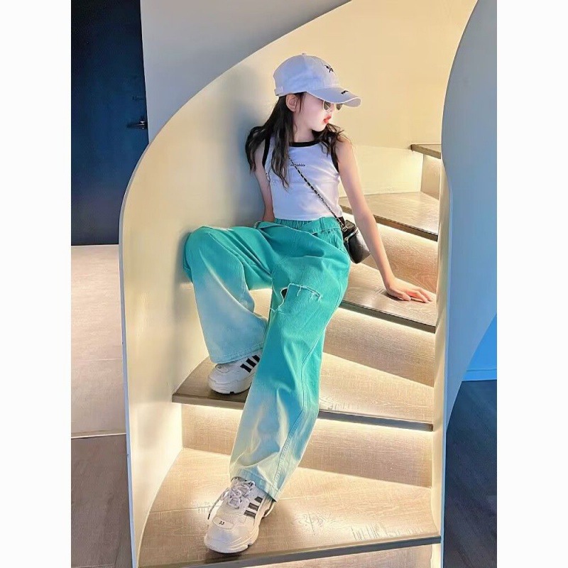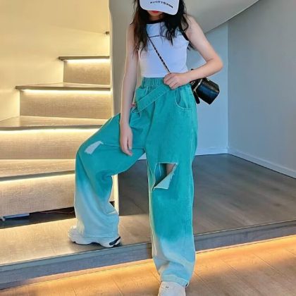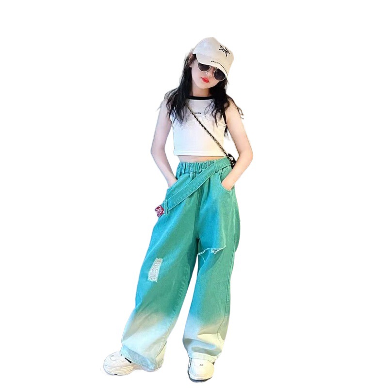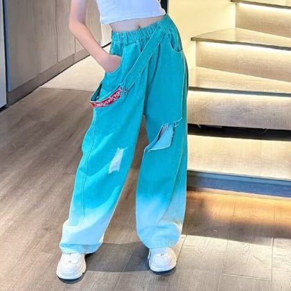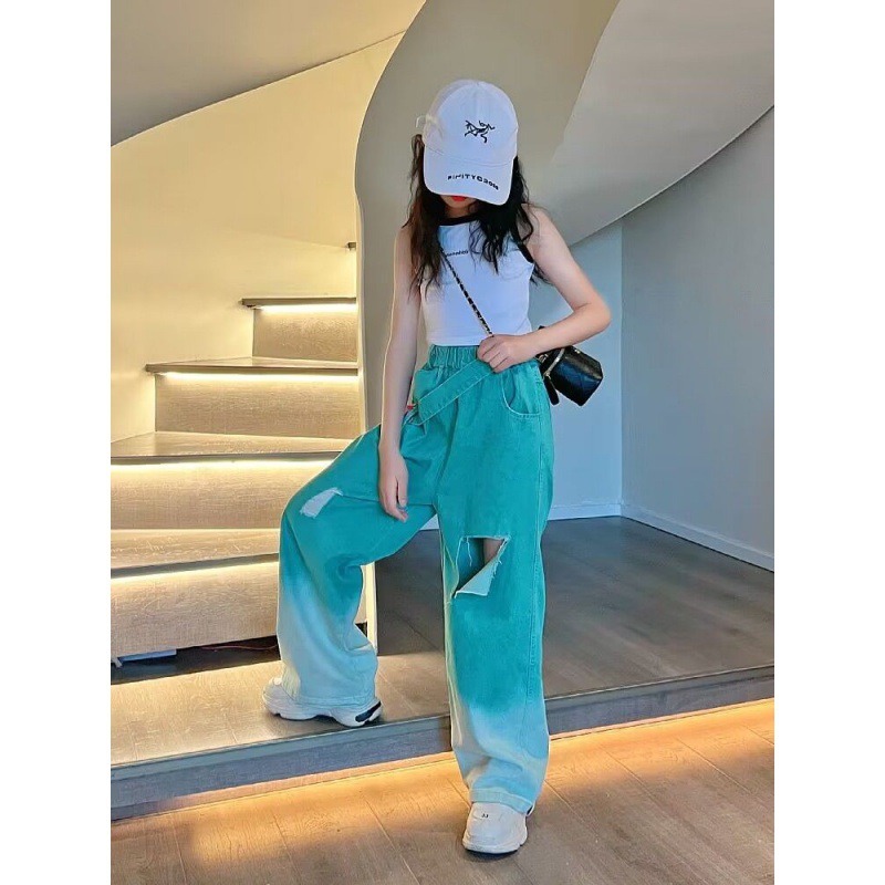 | nameOriginal | Girls' Summer Gradient Jeans 2024 New Style Summer Western Style Children's Internet Celebrity Street Ripped Wide-leg Trendy Pants |