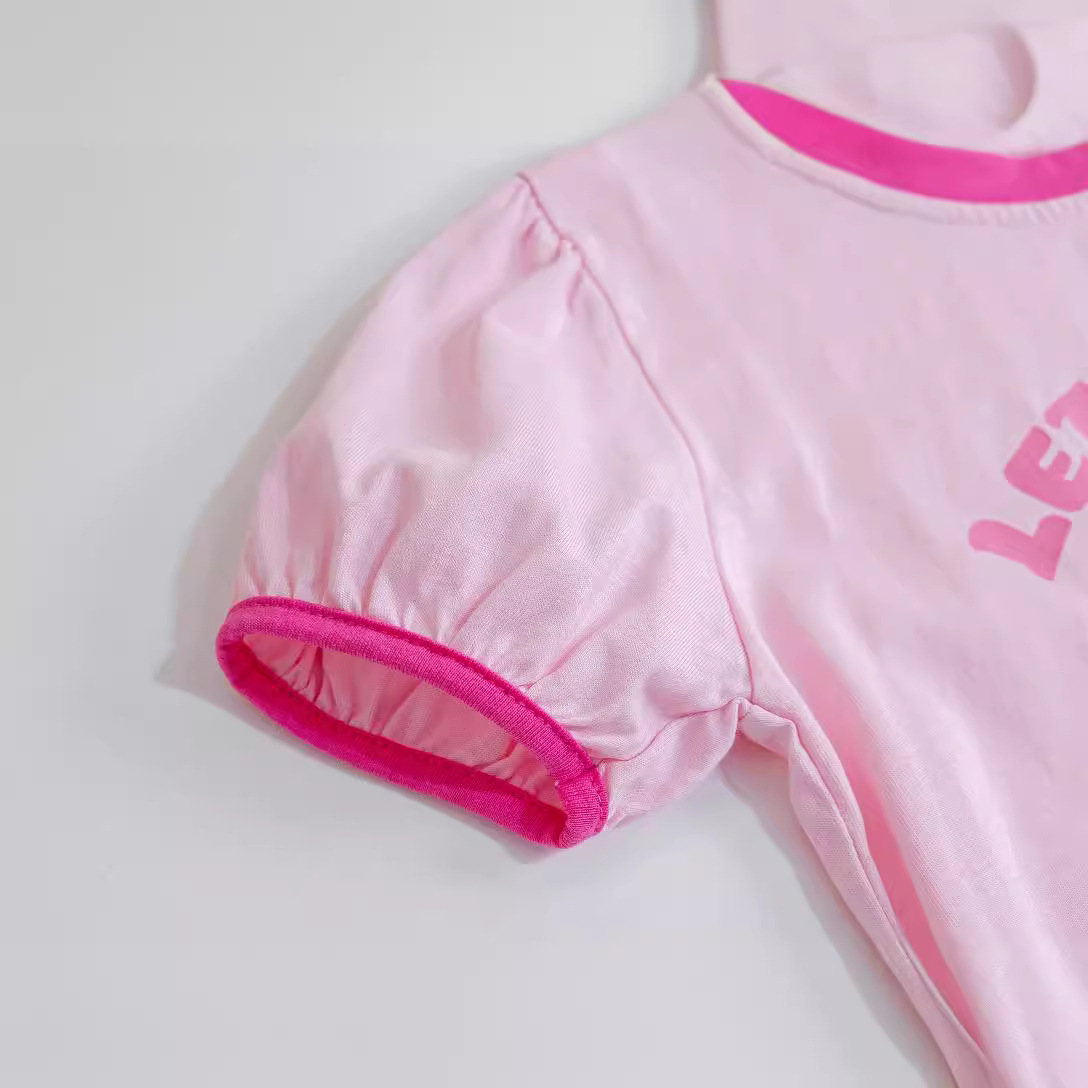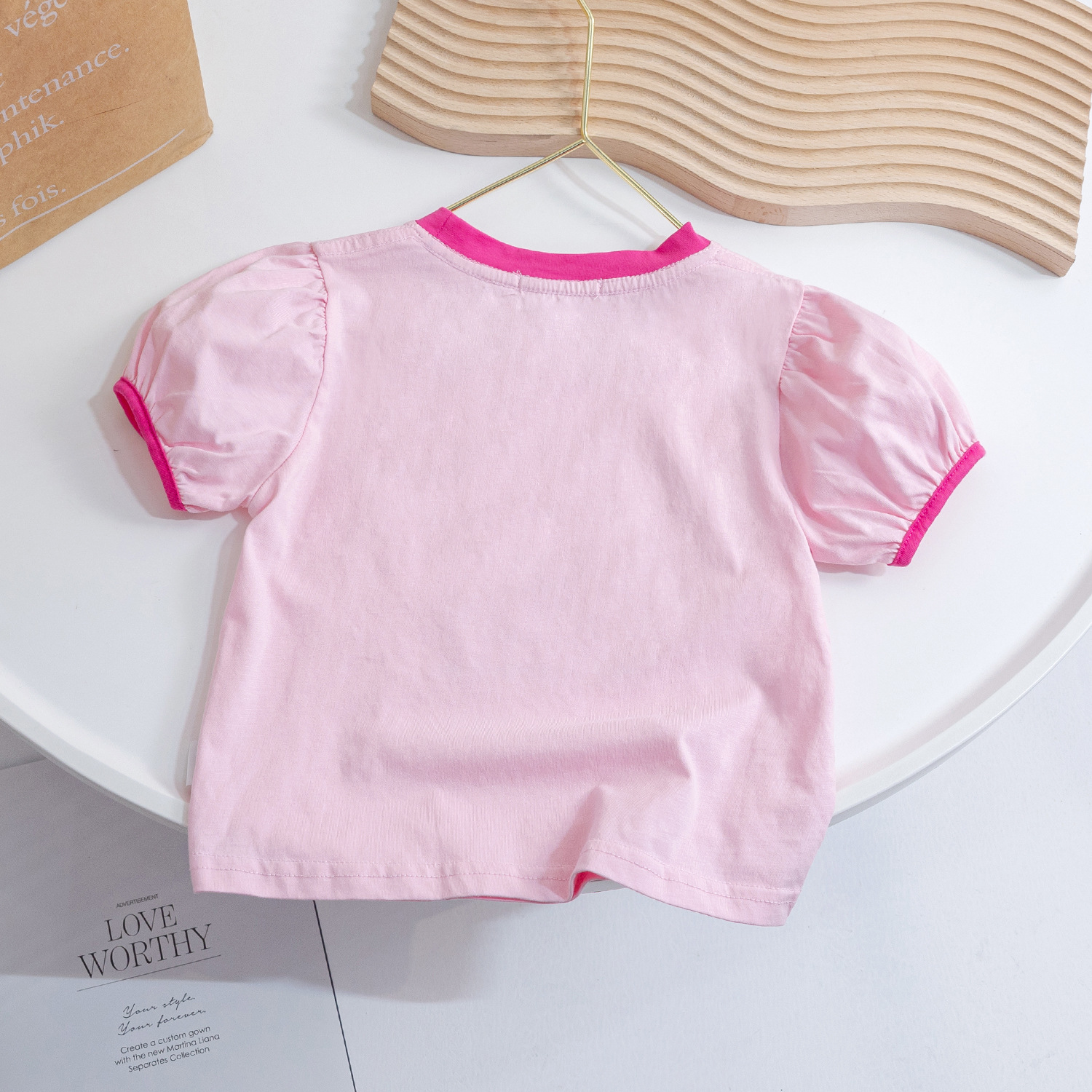 | nameOriginal | Girls' Summer Korean Style Cartoon Rabbit New 2023 Round Neck Simple All-match Pleated Puff Sleeve Short-sleeved T-shirt |