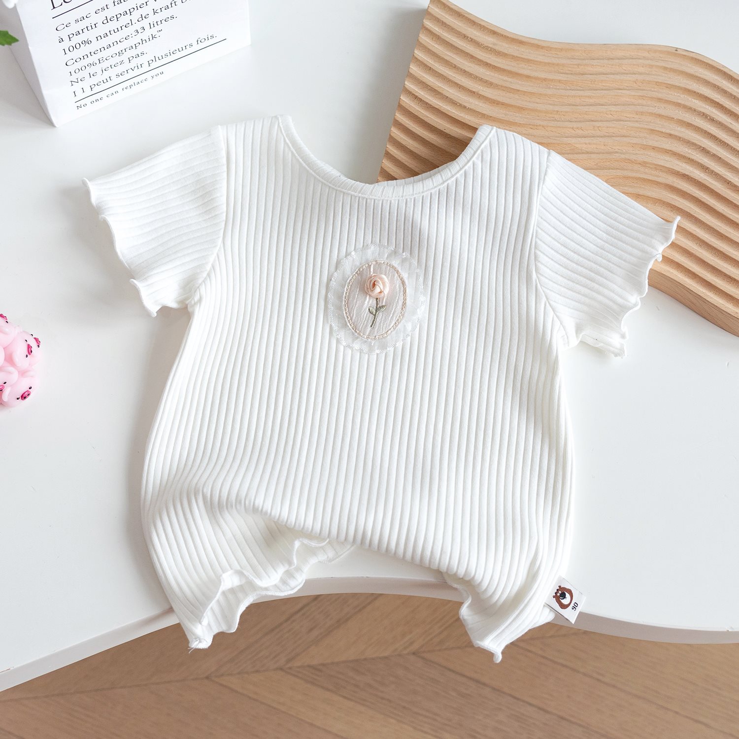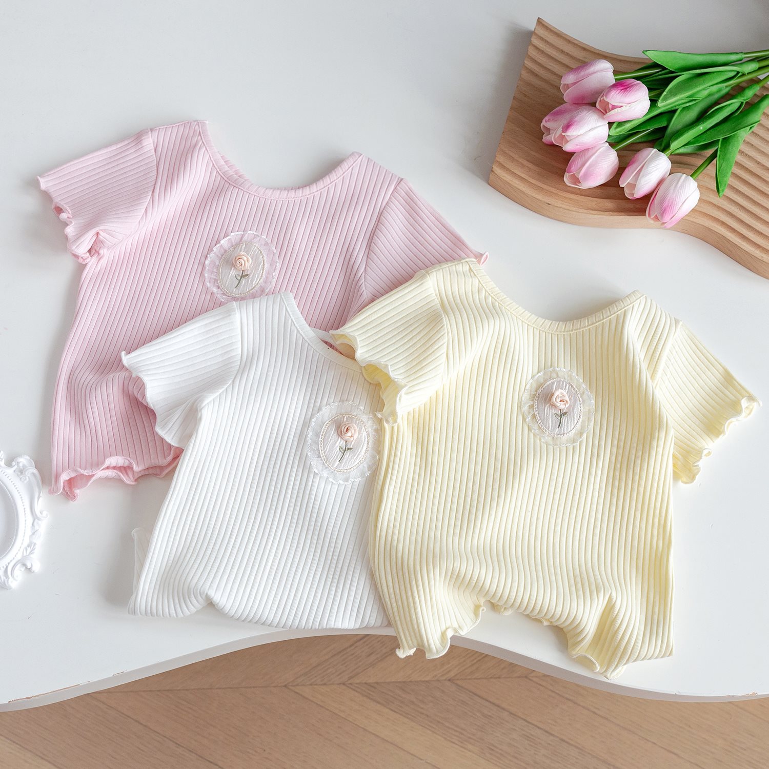 | nameOriginal | Girls' Summer New Thin Soft Cotton T-Shirt 2024 Western Style Sweet Princess Solid Color Small Flower Half Sleeve Short Sleeve Shirt |