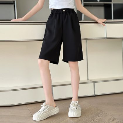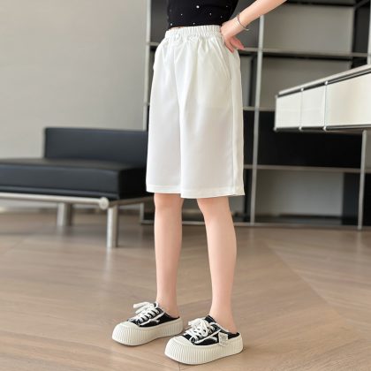 Girls' Summer Pants 2024 New Korean Style Middle and Large Children's Thin Loose Straight Wide-leg Suit Mid-length Pants