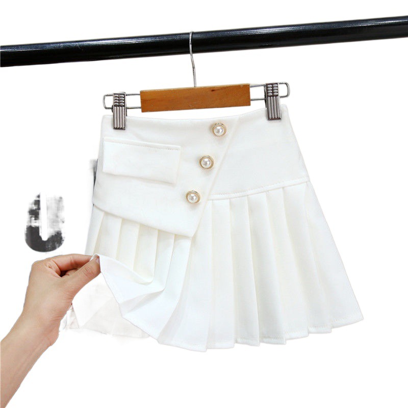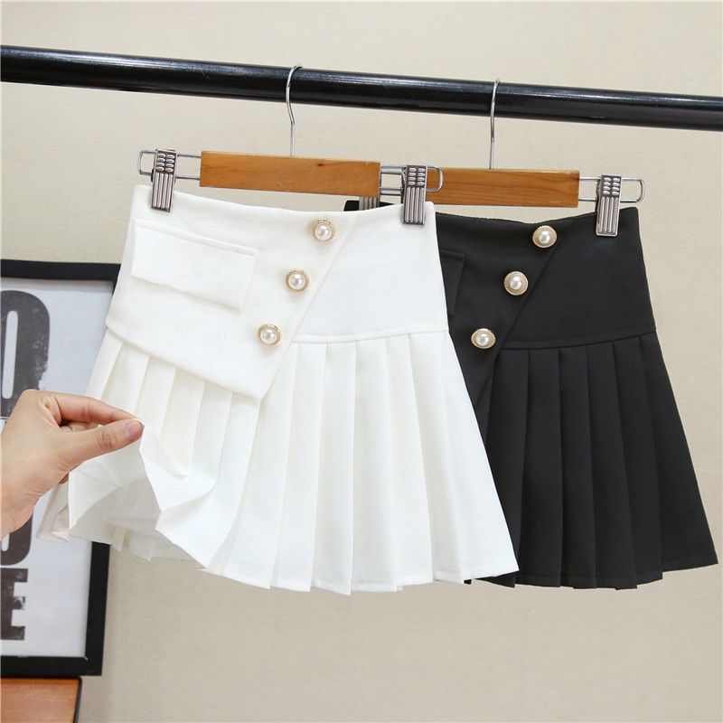 Girls' Summer Pleated Half-length Skirt for 2024 Girls and Children Spring and Summer Solid Color A Version Skirt College Style