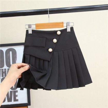 تنورة صيفية للبنات نصف طول بطيات لعام 2024 للفتيات والأطفال للربيع والصيف بلون سادة نسخة تنورة على طراز الكلية