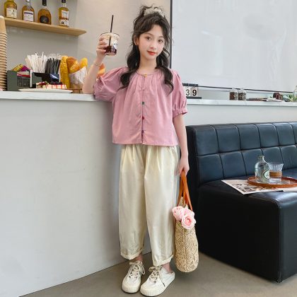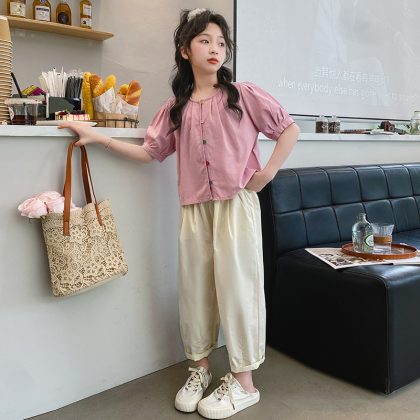 | nameOriginal | Girls' Summer Short-sleeved suit Casual Thin Summer Children's Big Girls' Flying-sleeved Shirt Trousers Wide-leg Pants Cotton and Linen |