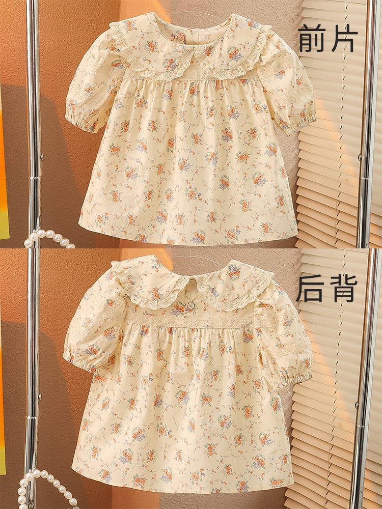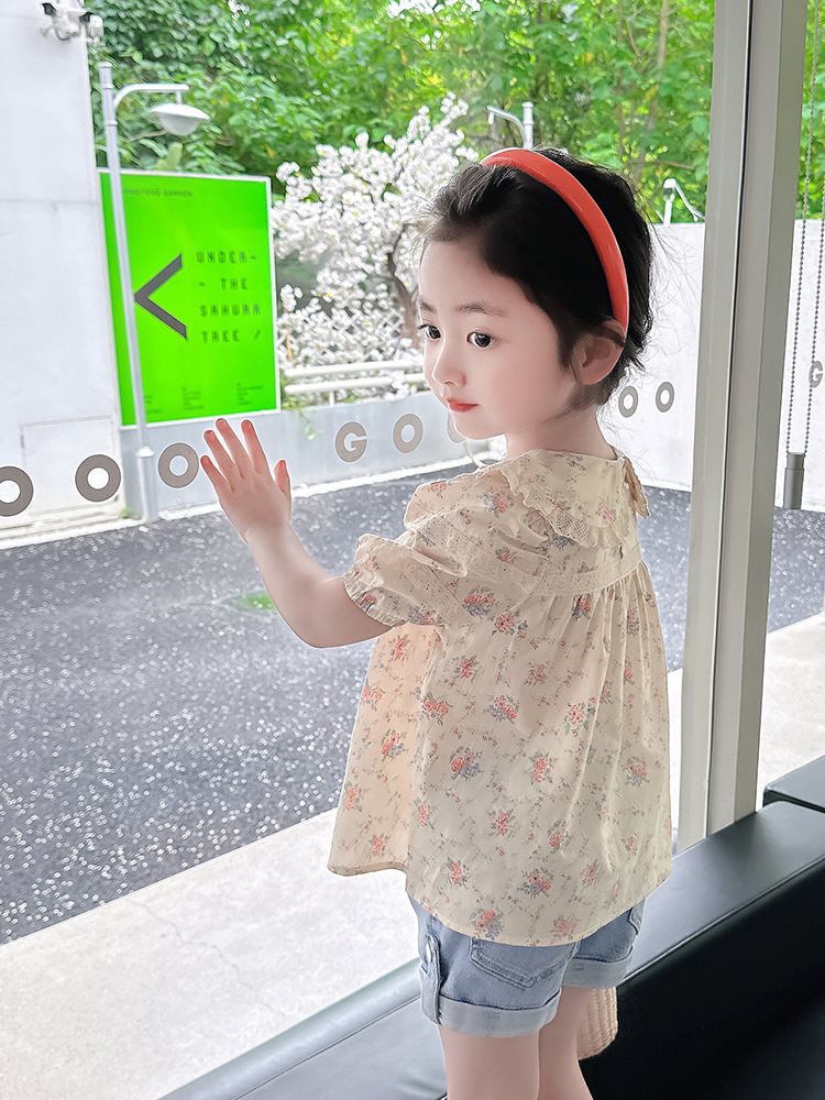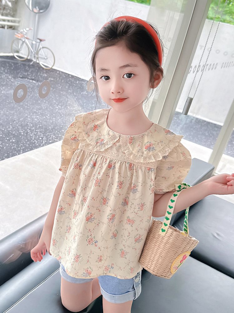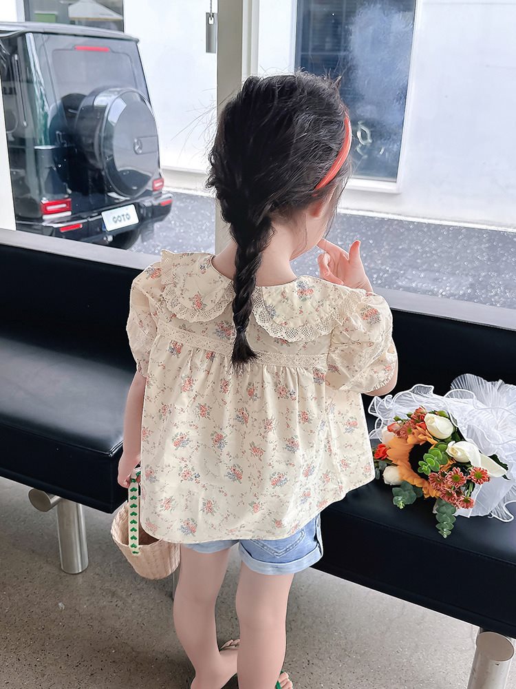 | nameOriginal | Girls' Summer Short-sleeved Top Cotton Shirt Button Cotton Floral Sweet Lace Korean Style Kindergarten Doll Shirt |