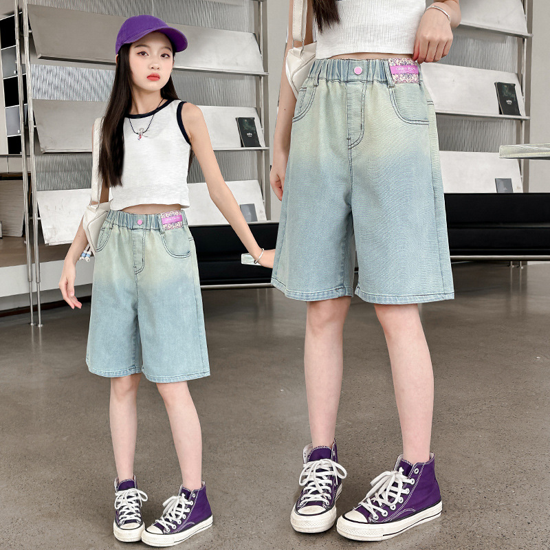| nameOriginal | Girls' Summer Shorts 2024 New Korean Style Mid-Big Children's Gradient Lightweight Breathable Denim Loose Straight Trendy Mid-Leg Pants |