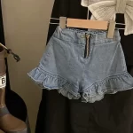 بدلة صيفية للبنات 2024 موضة جديدة للفتيات سترة بفيونكة كبيرة شورت من قماش الدنيم مكون من قطعتين عصري