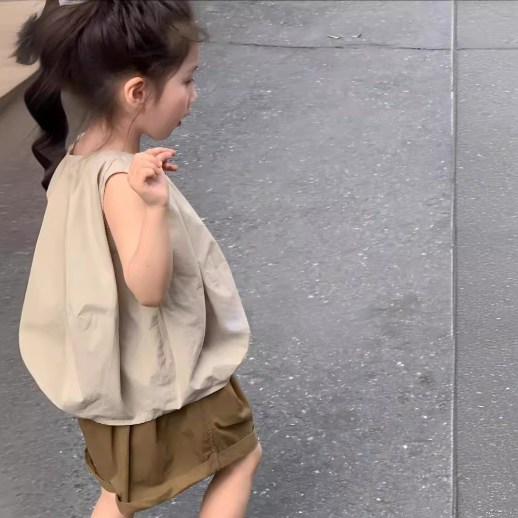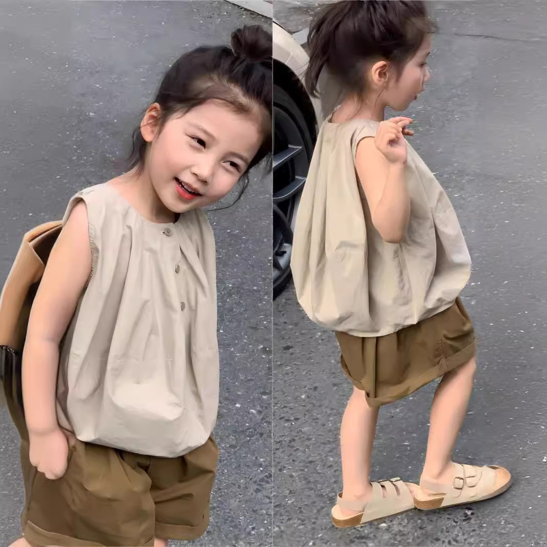 Girls' Summer suit Korean Style 2024 New Arrival Girls' Summer Japanese Style Flying Sleeve Shorts Loose Two-Piece suit