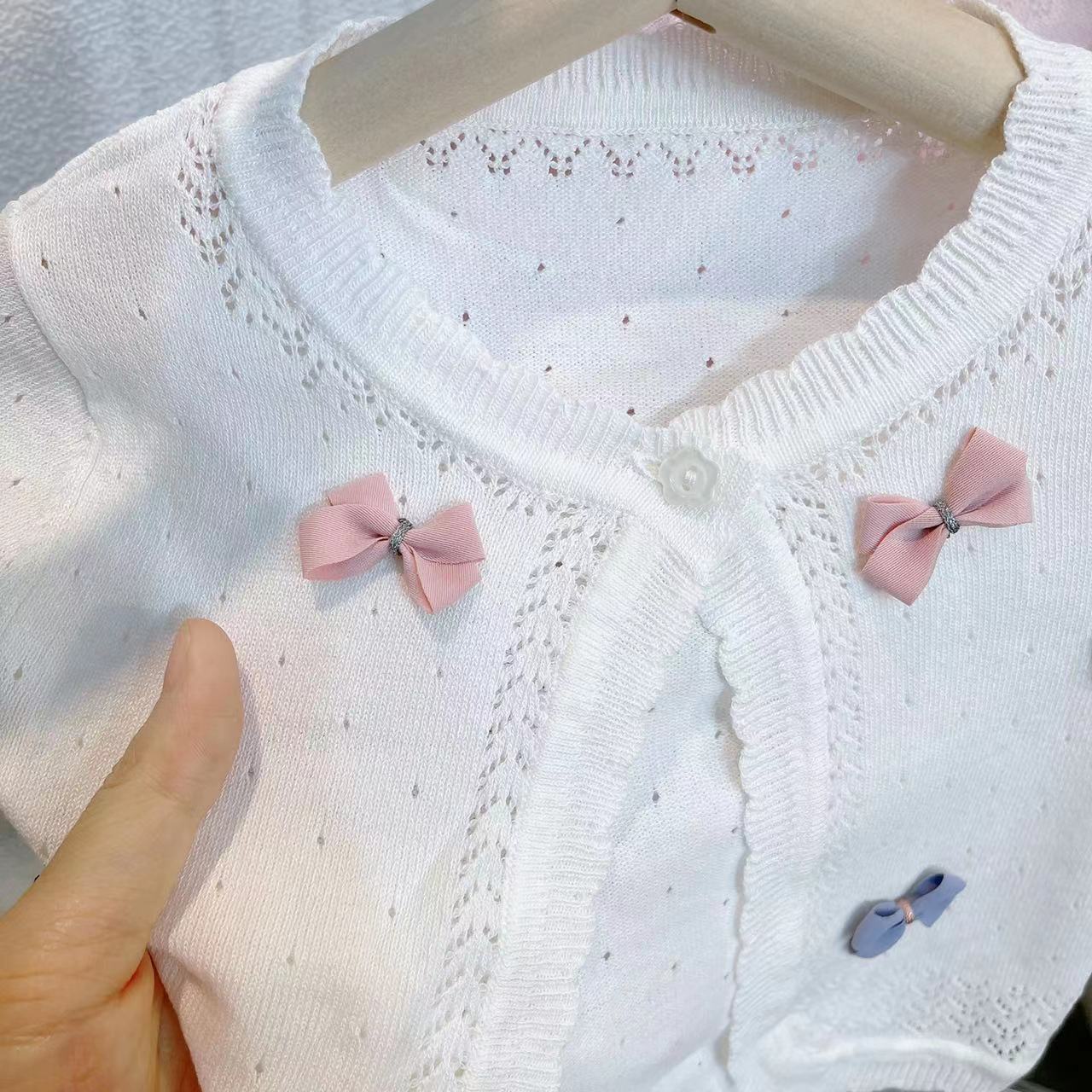 | nameOriginal | Girls' Summer Thin Air-conditioning Shirt Top Baby's Knitted Hollow Small Cardigan Sunscreen Clothing Children's All-match Small Shawl |