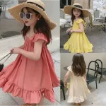 | nameOriginal | Girls suspender dress 2024 summer summer children's ruffled flying sleeves square collar mid-length holiday skirt thin section |