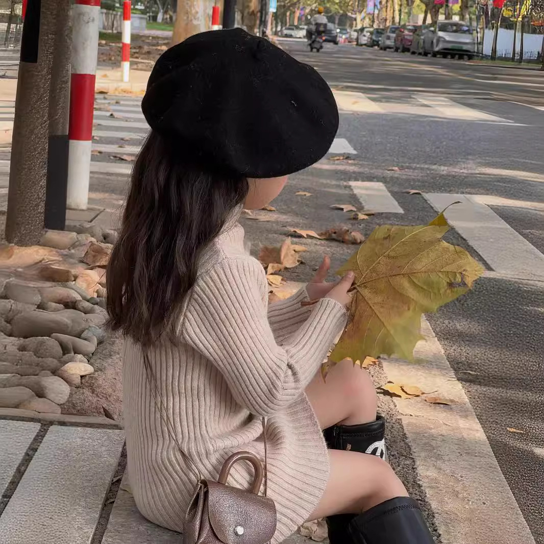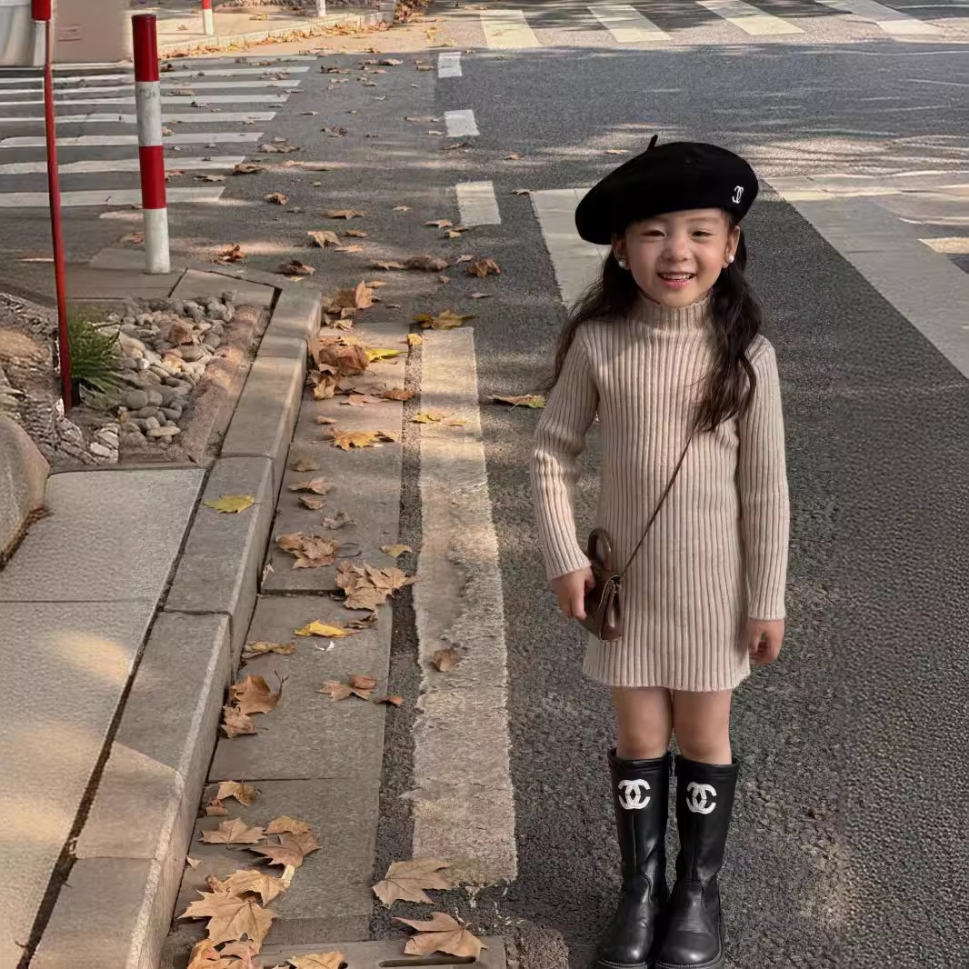 Girls' Sweater Autumn and Winter New Mid-length 2024 Children's Pullover Korean-style All-match Internet Celebrant Base Sweater Trend