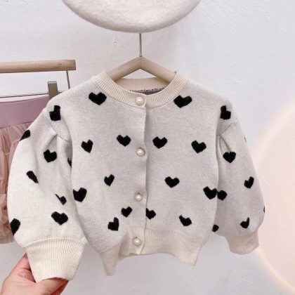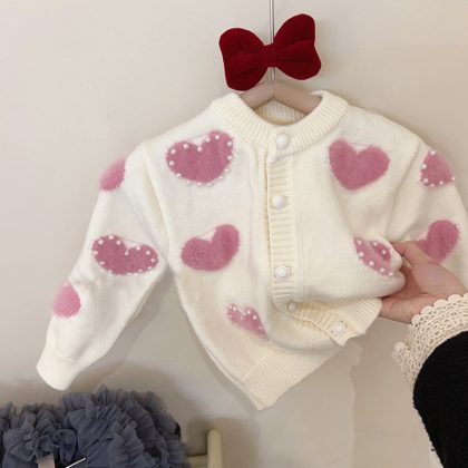 Girls' Sweater Cardigan Coat 2024 Autumn Korean Children's Wear Western Style Knitwear Fashionable Comfortable Top