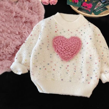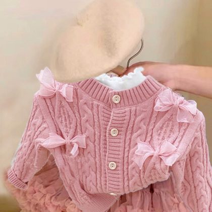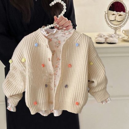سترة صوفية للفتيات معطف خريف 2024 ملابس أطفال كورية على الطراز الغربي ملابس تريكو عصرية ومريحة