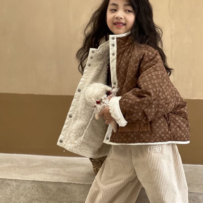 | nameOriginal | Girls' sweater coat 2023 autumn new children's autumn and winter thickened cotton-padded coat lamb wool double-sided top |