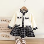 | nameOriginal | Girls' sweater suit skirt golden edge Chanel style simple style knitted two-piece skirt baby girls' Western style cardigan long sleeve |