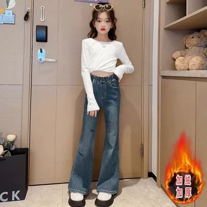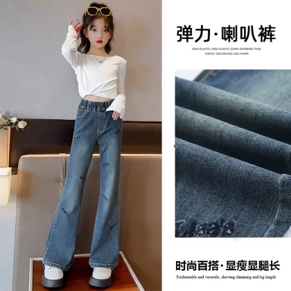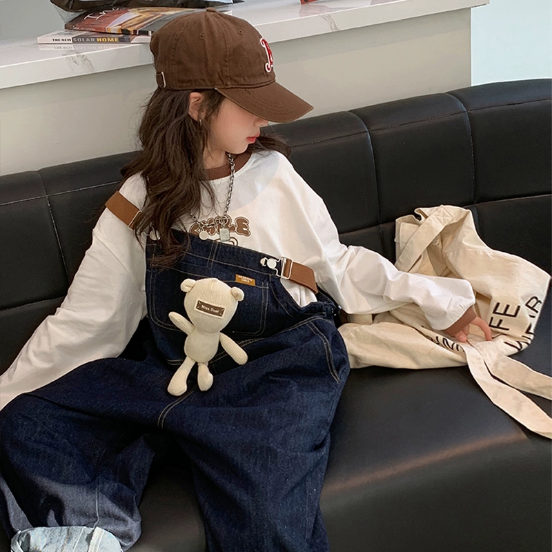 Girls sweatshirt denim overalls suit children's pants spring fashion casual casual middle and large children loose suspender trousers