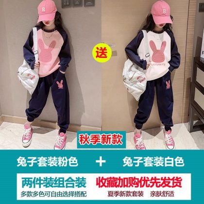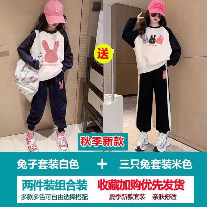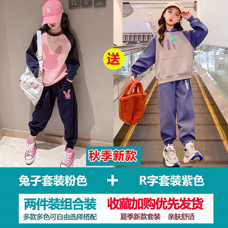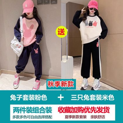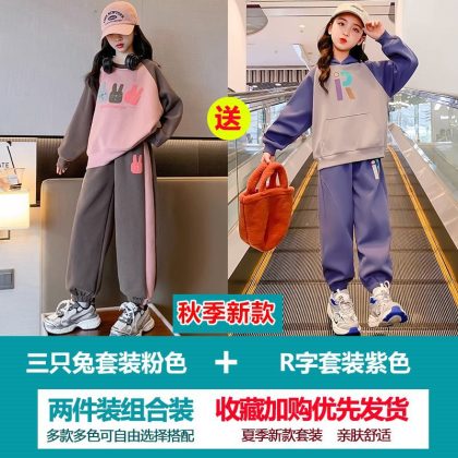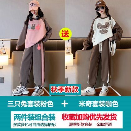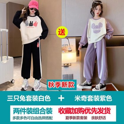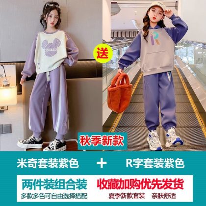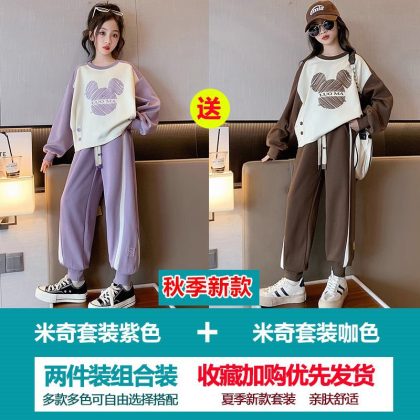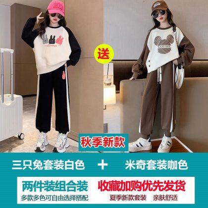 Girls' Sweatshirt suit Autumn 2023 New Style Children's Spring and Autumn Fashionable Clothes Girls' Sports Two-Piece Set