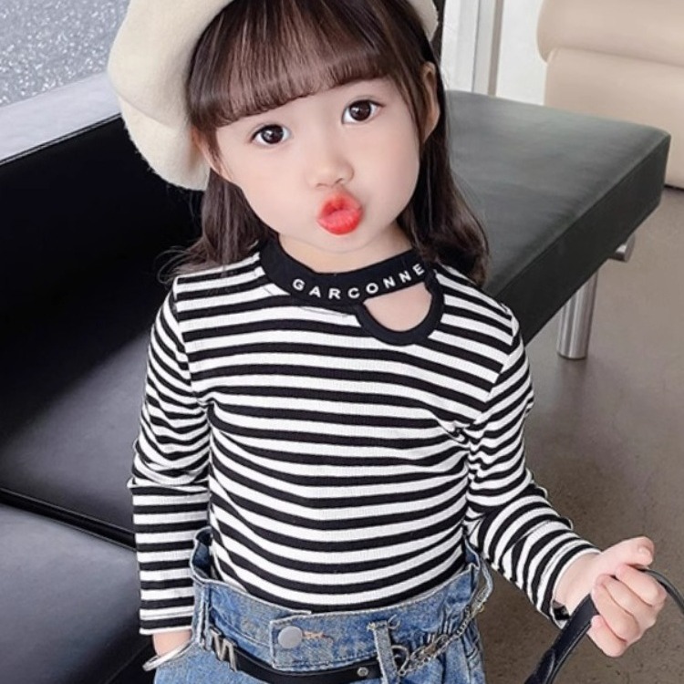 | nameOriginal | Girls' T-shirt Spring and Autumn 2024 New Children's Cotton Long Sleeve Striped Base Shirt for Baby Girls Spring Spring T-shirt Round Neck |