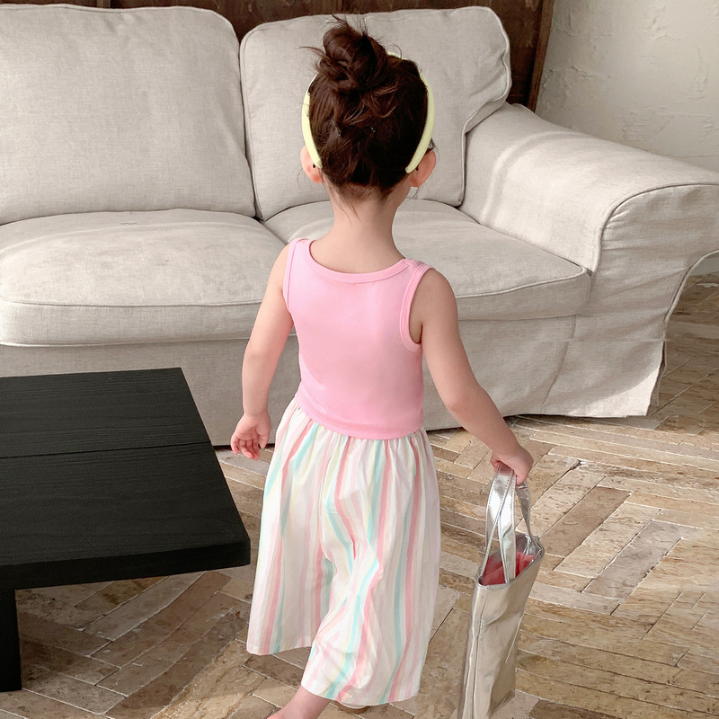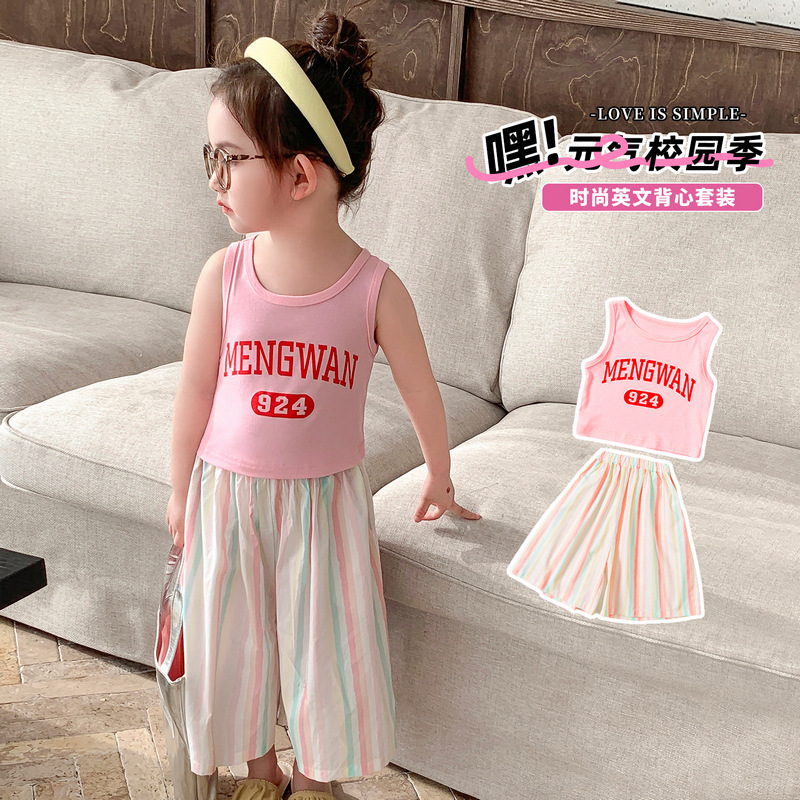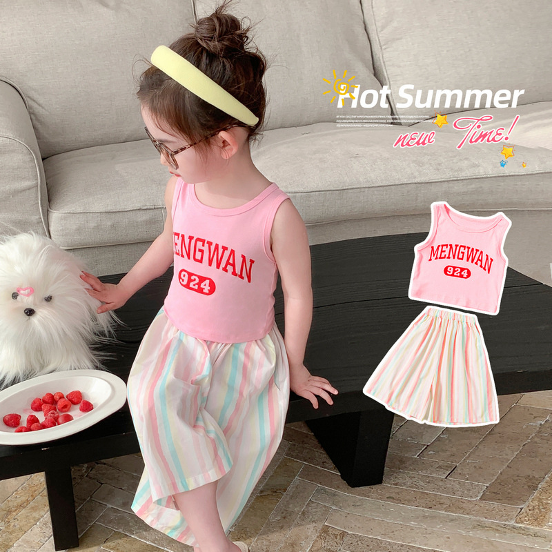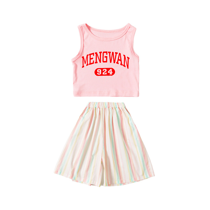 | nameOriginal | Girls' Vest suit Summer 2024 New Korean Style Foreign Style Children's Short Top Wide Leg Pants Two-Piece Summer Set |