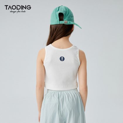 Girls' Vest Summer 2024 New Style Middle and Large Children's Pure Cotton Sleeveless Striped Short Printed Casual Sling Base