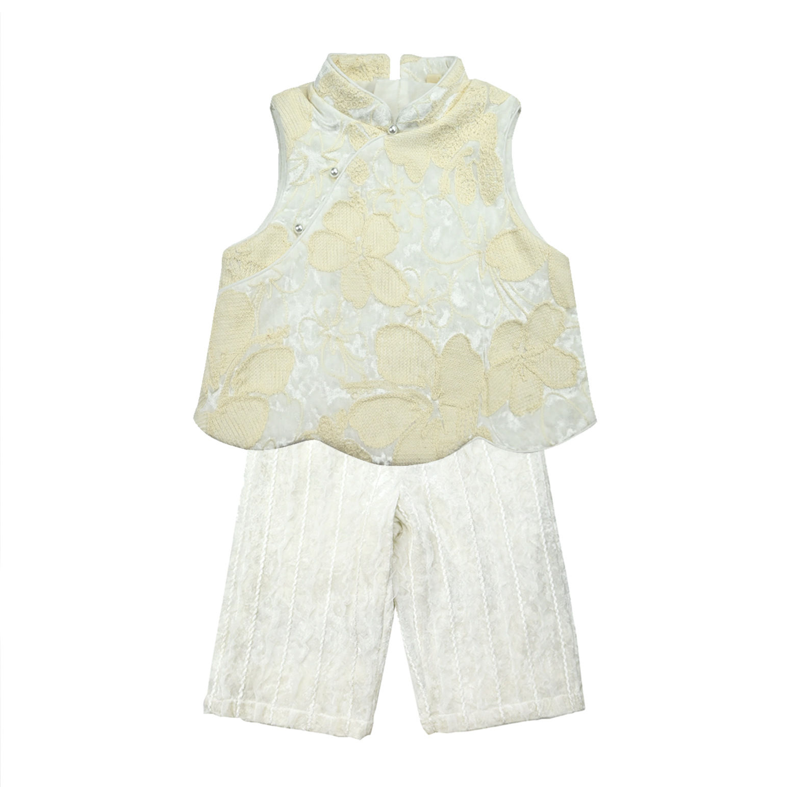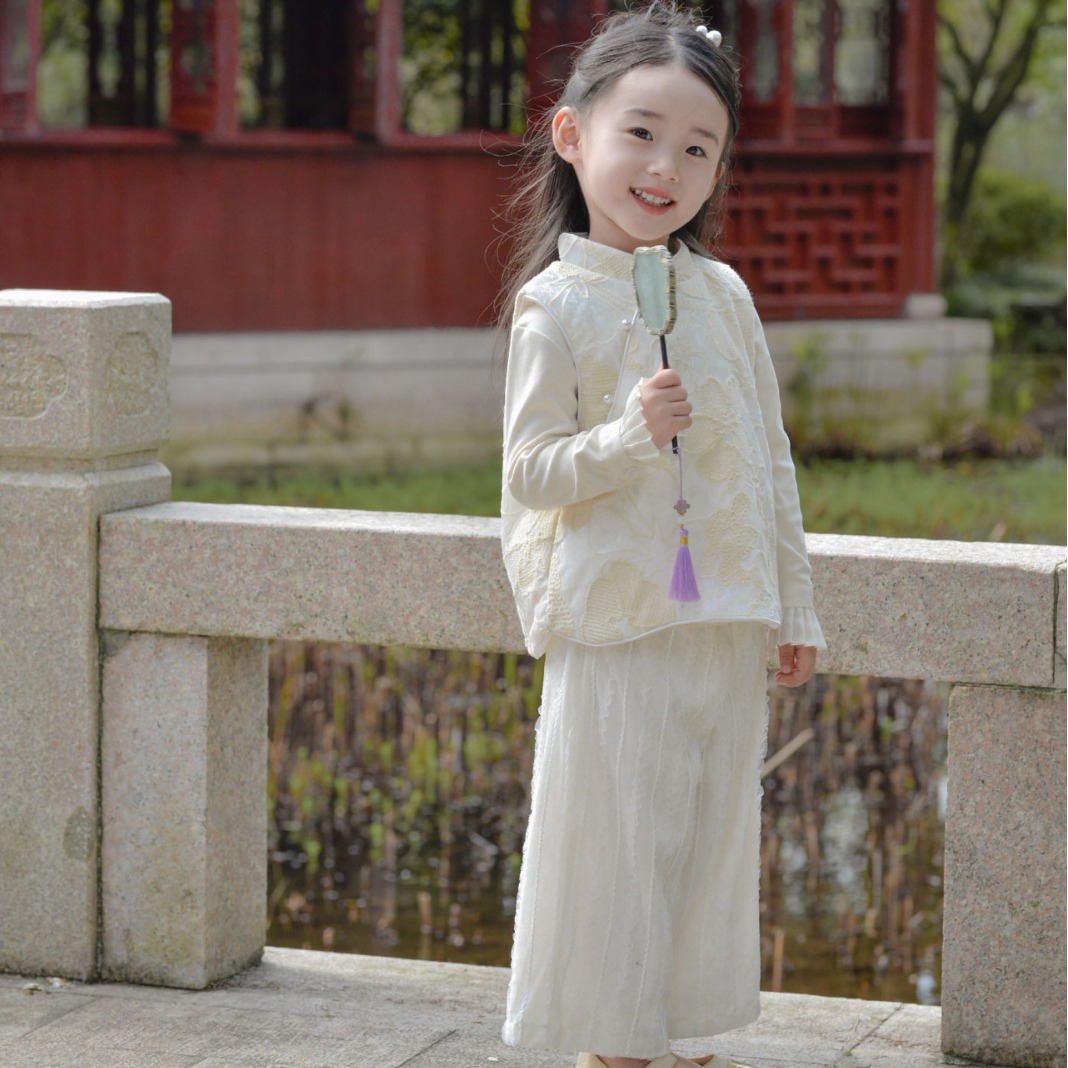 Girl's white embroidered wave lace vest cheongsam autumn and winter Chinese style improved Girl's waistcoat ancient style vest