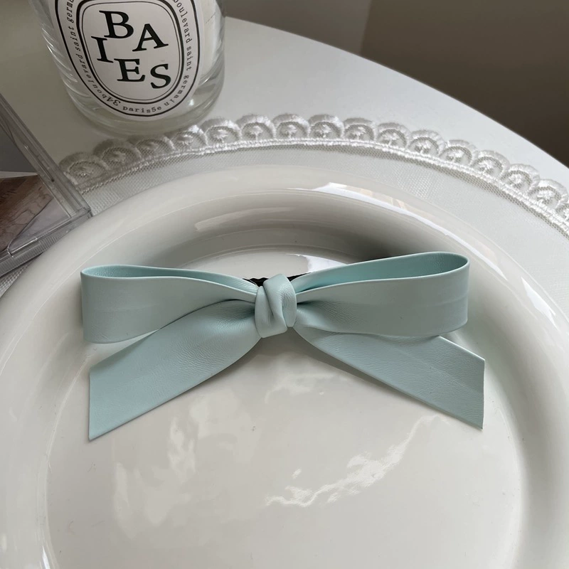 دبوس شعر جلدي على شكل قلب جرلي بتصميم فيونكة متخصصة