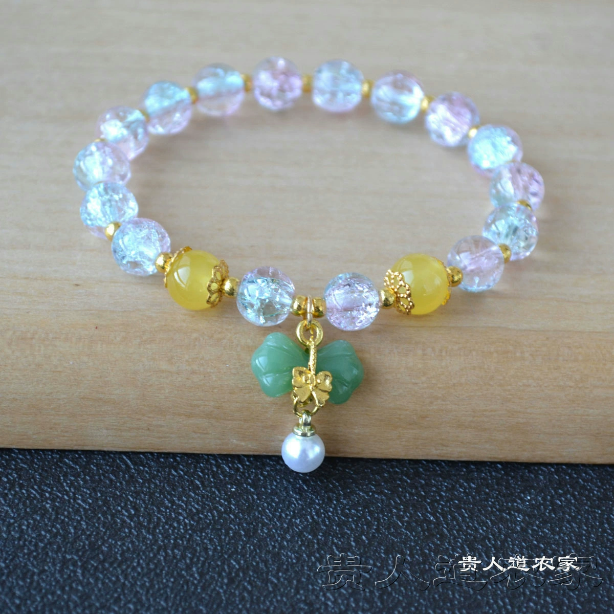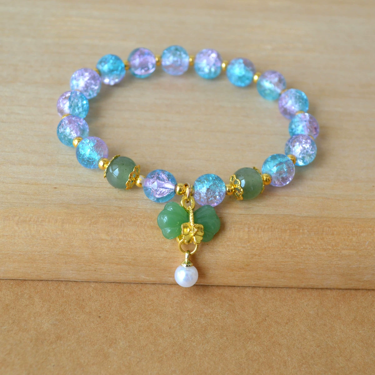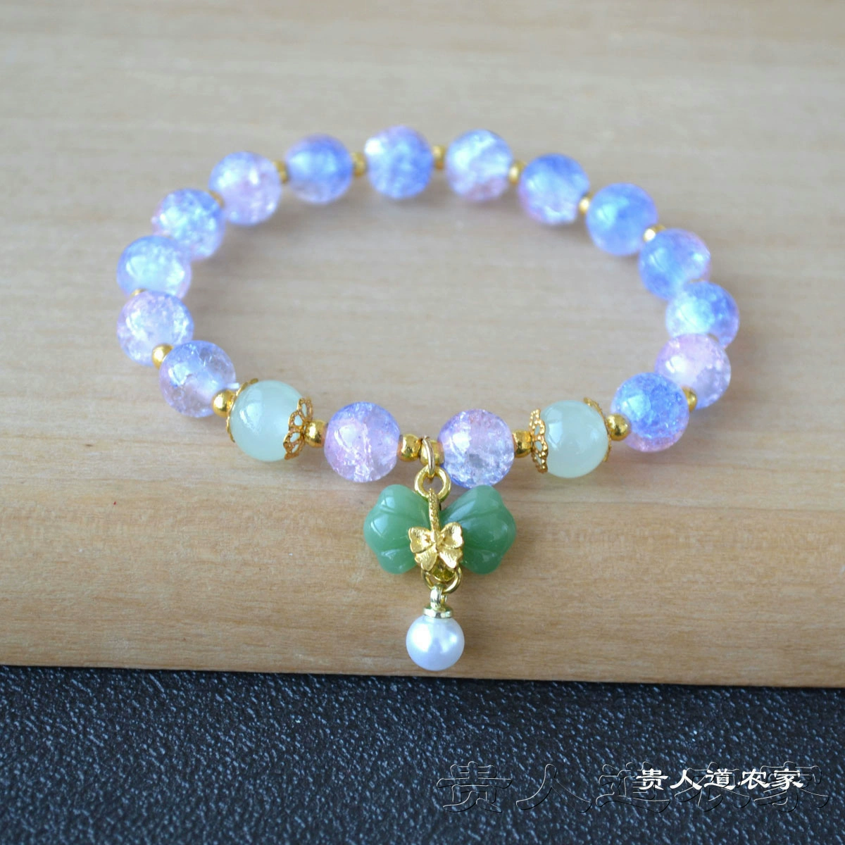 | nameOriginal | Glass bead imitation jade crystal agate bracelet female student best friend gift sweet four-leaf clover butterfly lotus bracelet |