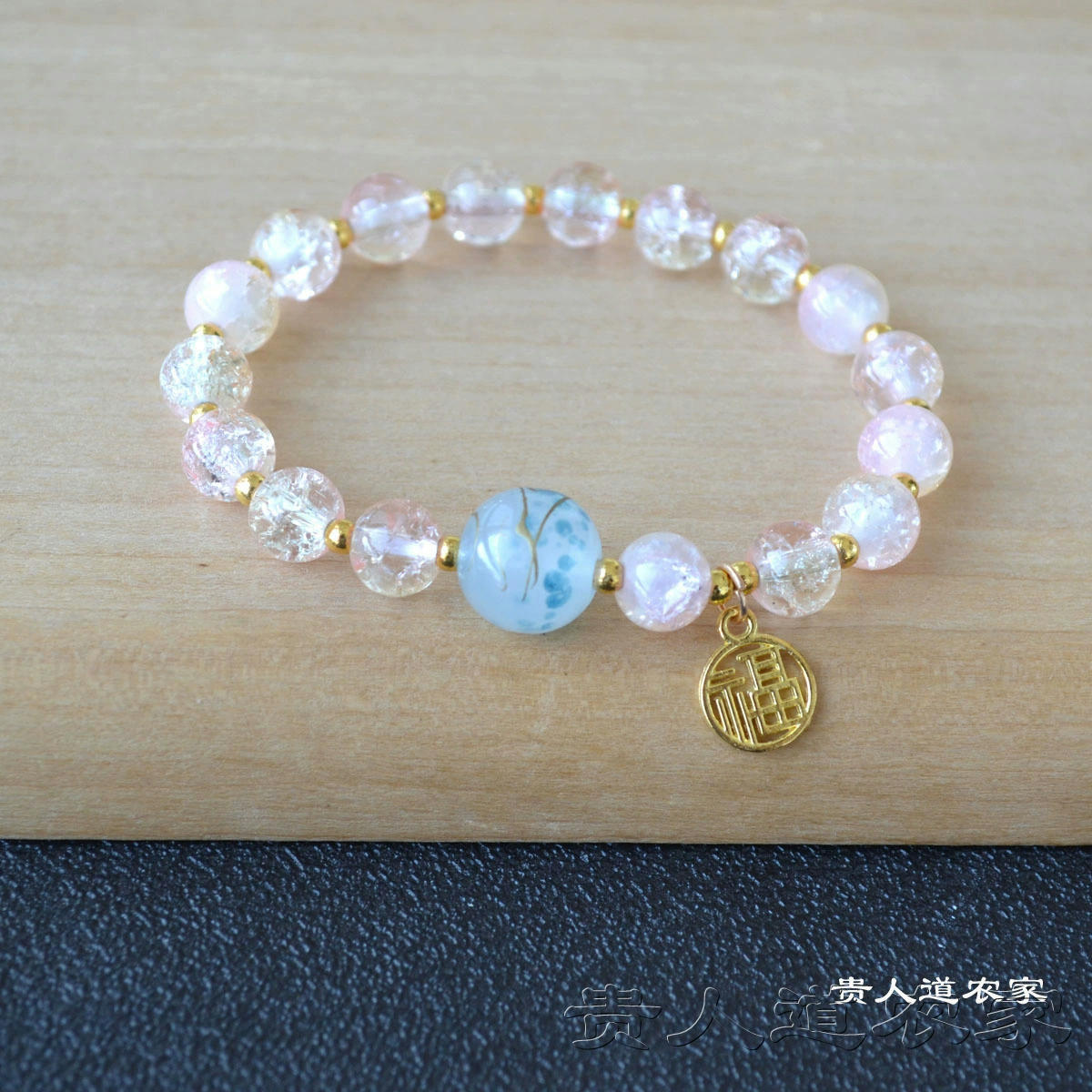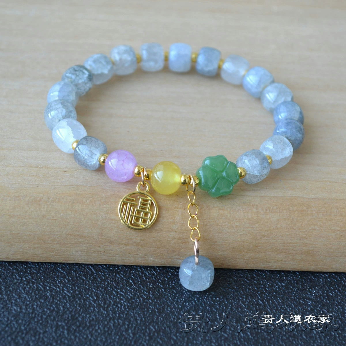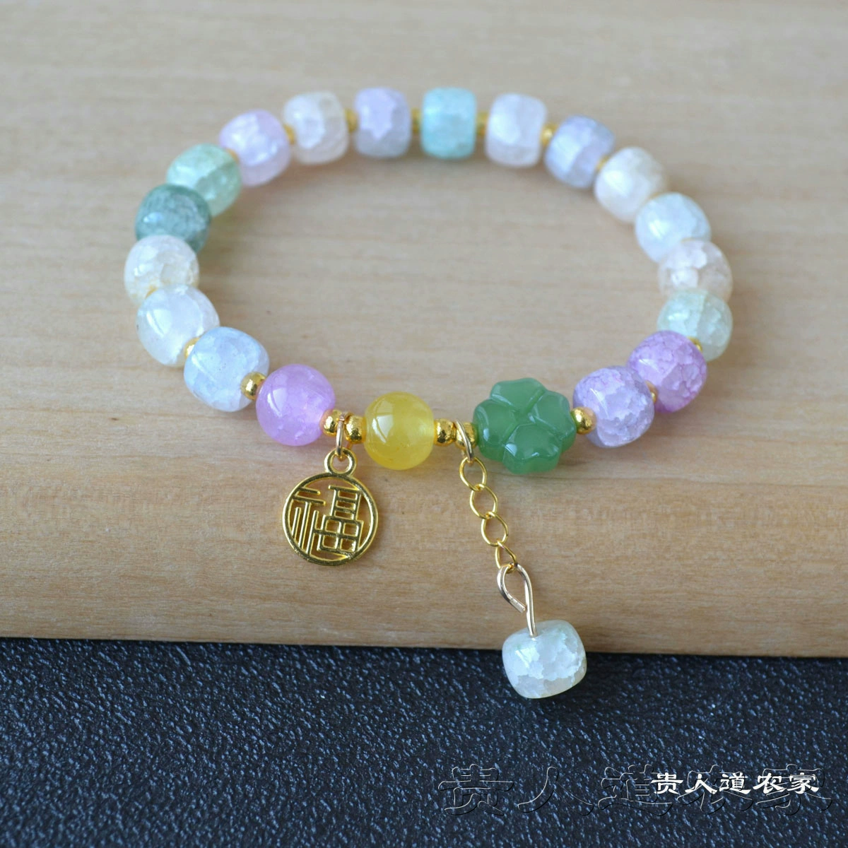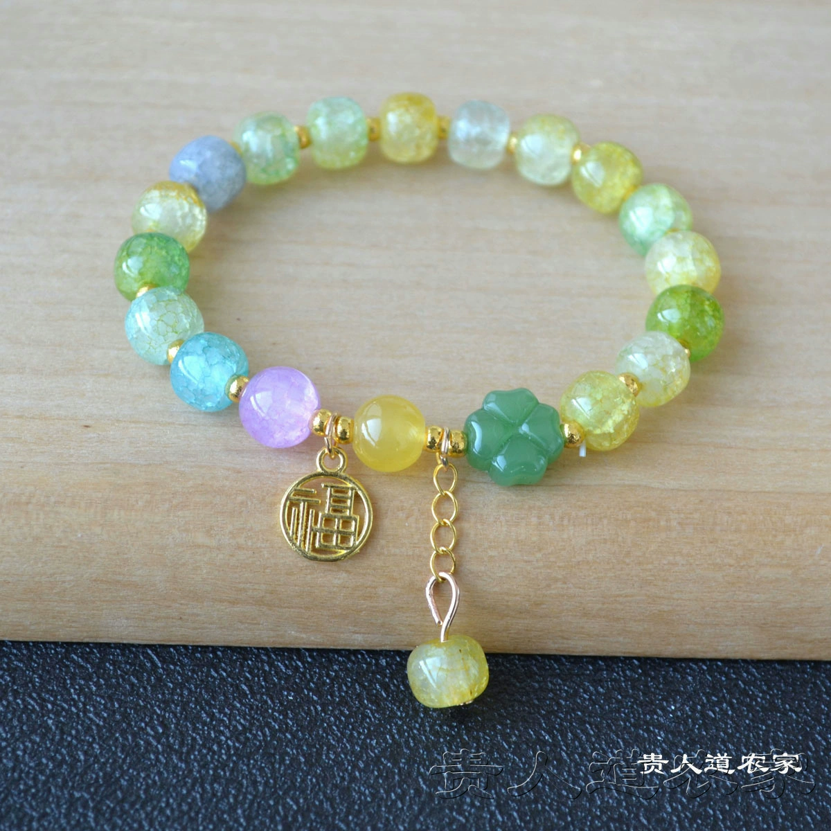 | nameOriginal | Glass bead imitation jade crystal agate bracelet female student best friend gift sweet four-leaf clover butterfly lotus bracelet |