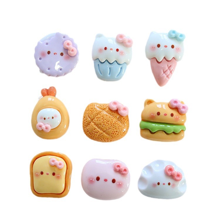 | nameOriginal | Glossy resin kitten biscuit small bread handmade accessories wholesale hair accessories shoe buckle water cup flat patch North 5 |