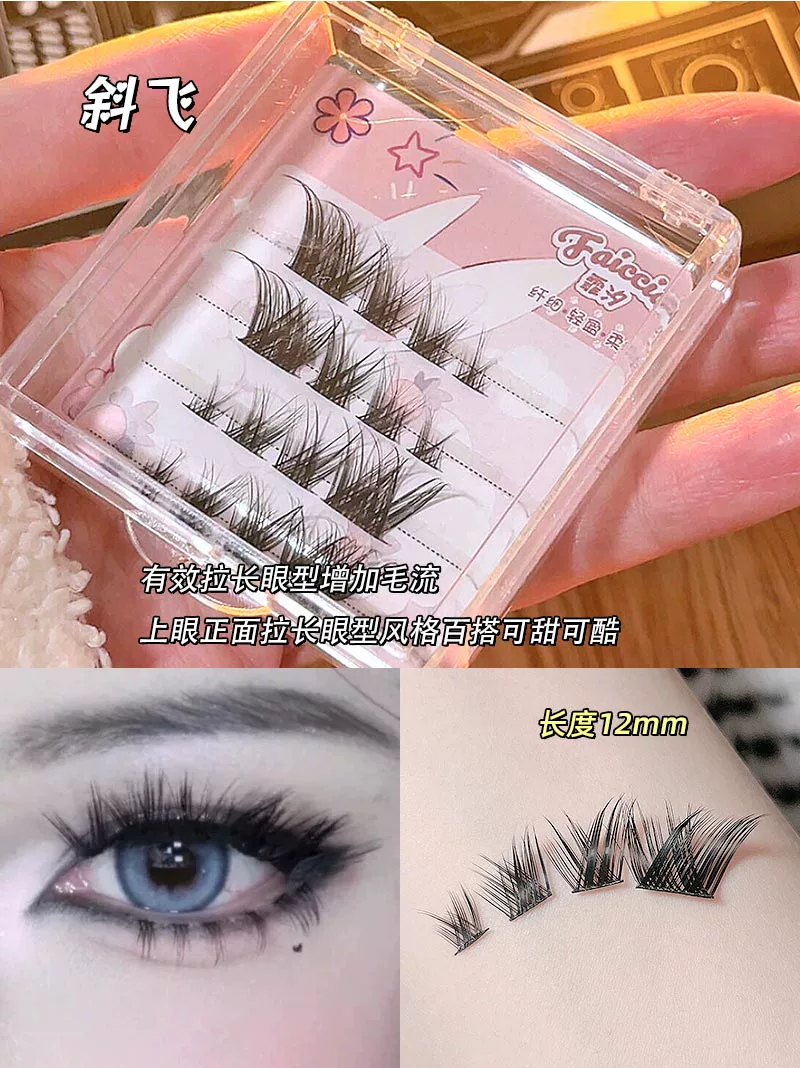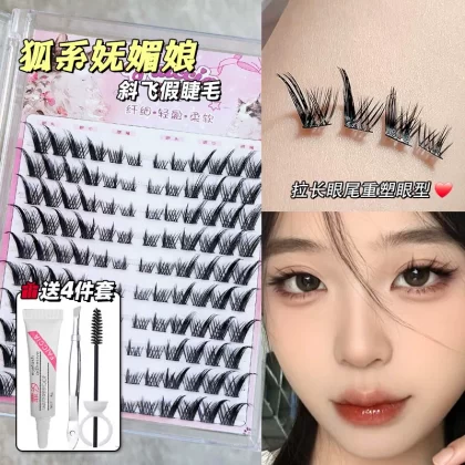 Glue-free self-adhesive fox style oblique flying false eyelashes baby straight antique style natural simulation rabbit style fox eye upper and lower eyelashes