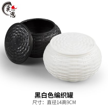 Go Chess Jar Black and White Plastic Round Plastic Imitation Straw Resin Dragon Scale Jar Gobang Box Large Square Bamboo