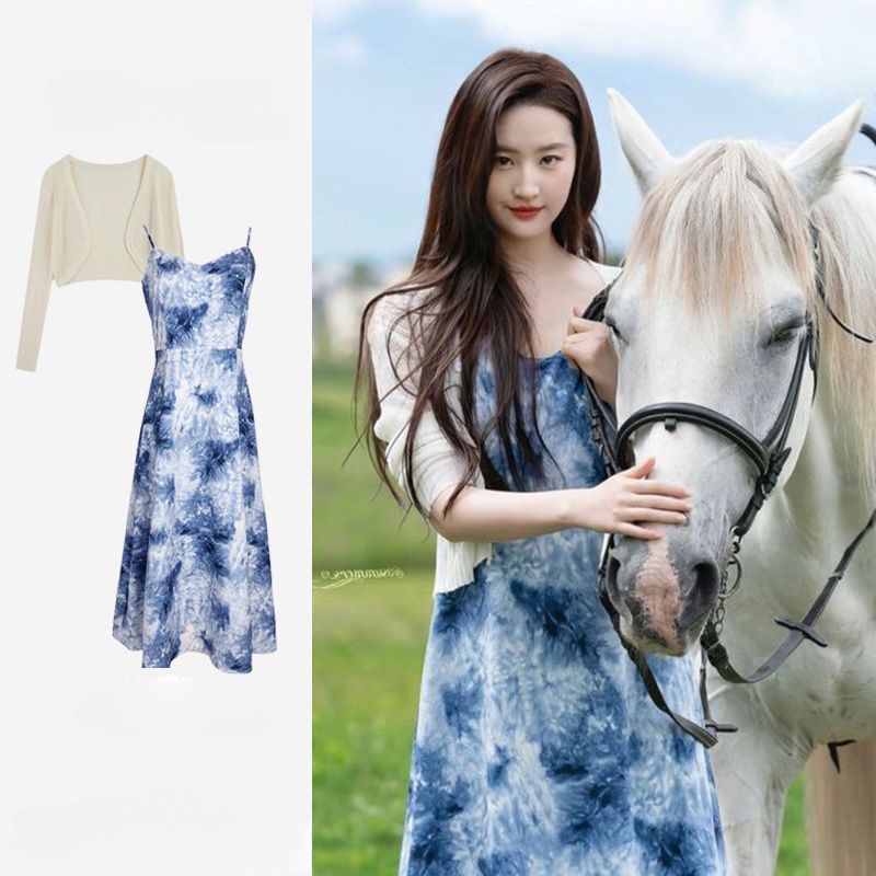 | nameOriginal | Go to Windy Places Xu Hongdou Same Style Liu Yifei Blue Sling Strap dress Holiday Skirt Beach Skirt |