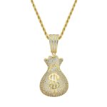 | nameOriginal | Gold bag pendant necklace European and American hip hop jewelry rap accessories cross-border dollar $symbol wallet pendant |