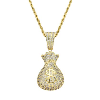 | nameOriginal | Gold bag pendant necklace European and American hip hop jewelry rap accessories cross-border dollar $symbol wallet pendant |