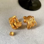 Gold earrings for women, light luxury niche design, high-end unique earrings, European and American exaggerated earrings, metallic temperament earrings