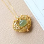 Gold-plated clavicle necklace embedded with imitation Hetian jade Ruyi Xiangyun hollow-out can open sachet box for elders gift