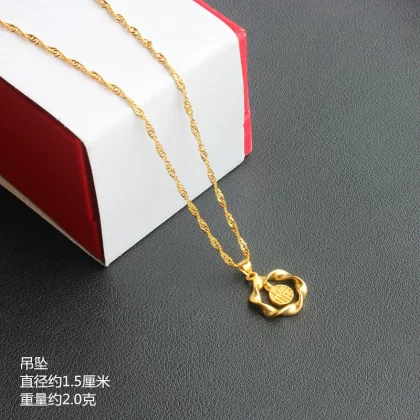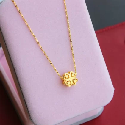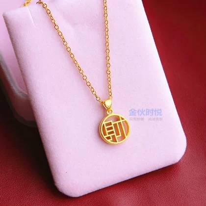 | nameOriginal | Gold-plated non-fading alluvial gold clavicle necklace with four hollow love pendants with the word "Fu" for wealth, exquisite, delicate and versatile |