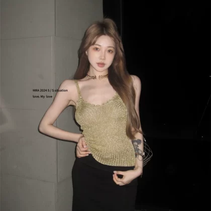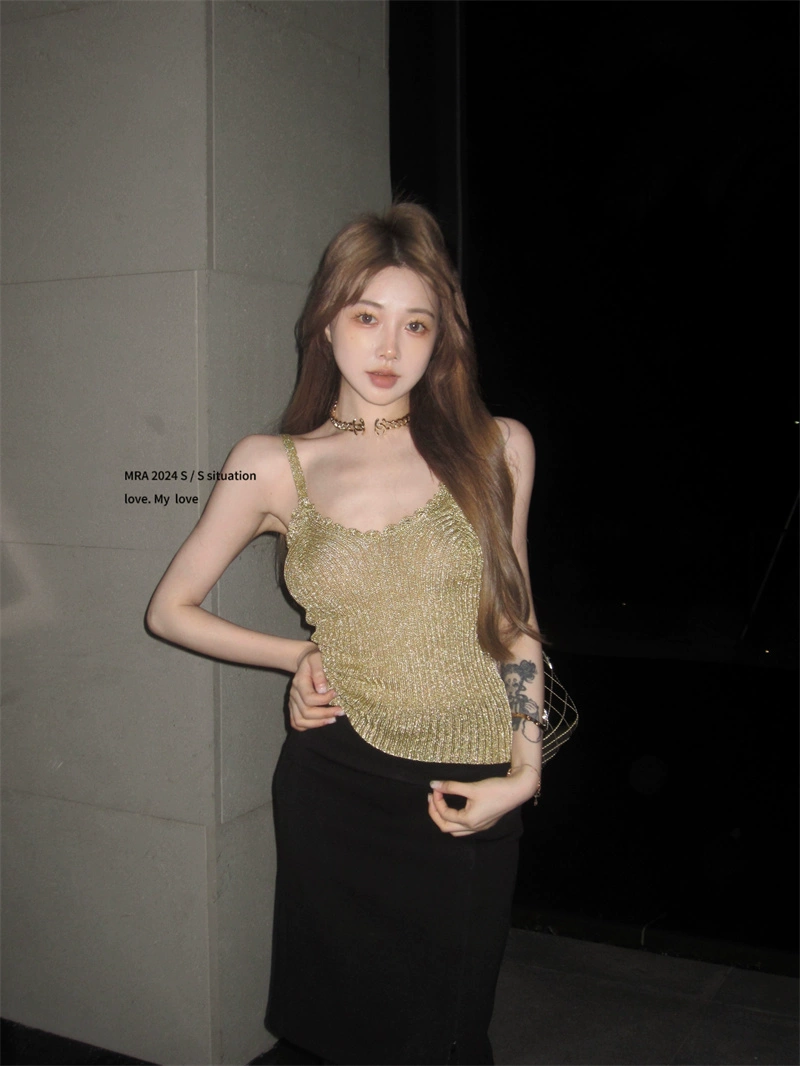 | nameOriginal | Golden silk v-neck knitted slim sleeveless suspender belt |