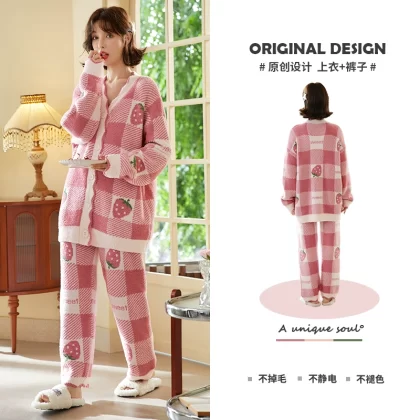 | nameOriginal | Gongdie Half Velvet Women's Thickened Strawberry Cardigan Pajamas |