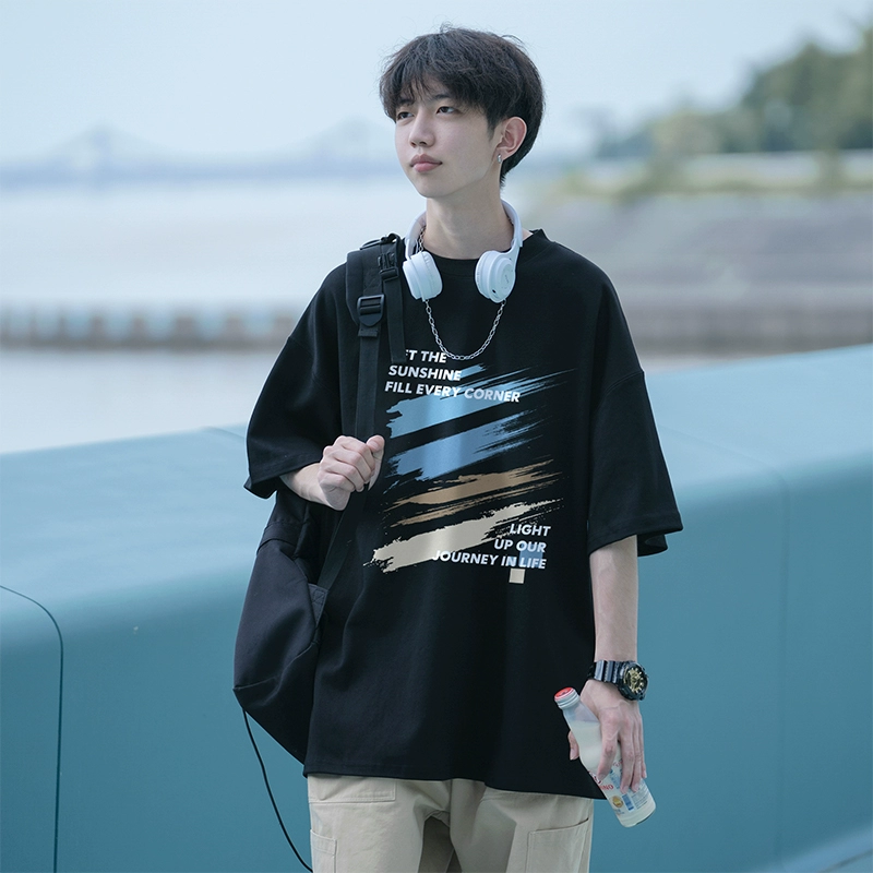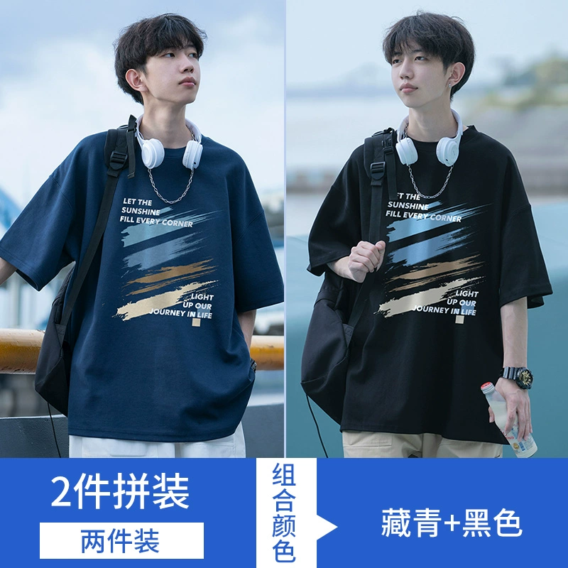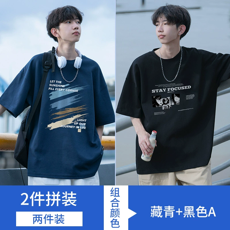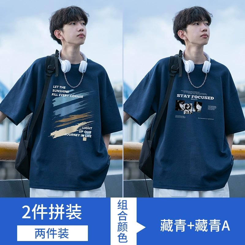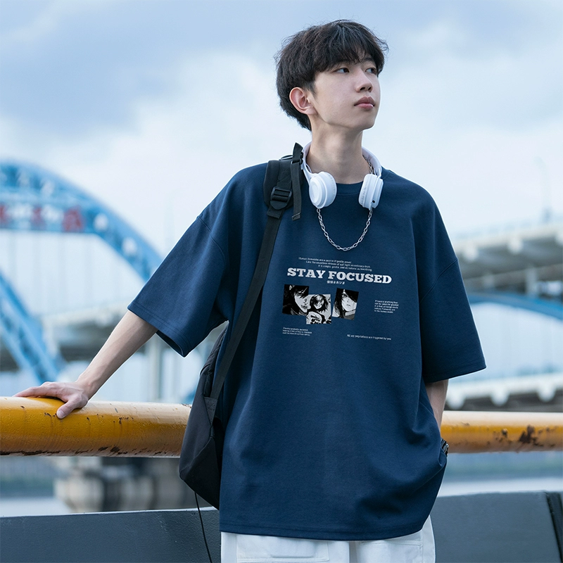 | nameOriginal | Graffiti Japanese navy blue men's ins short-sleeved t-shirt |