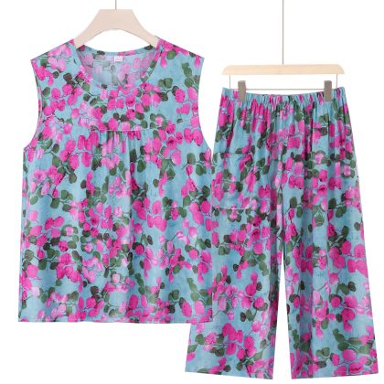 | nameOriginal | Grandma Summer Cotton Silk Sleeveless Vest Pajamas Two-piece Set for Middle-aged and Elderly Mother Clothes Summer Home Clothes suit Women |