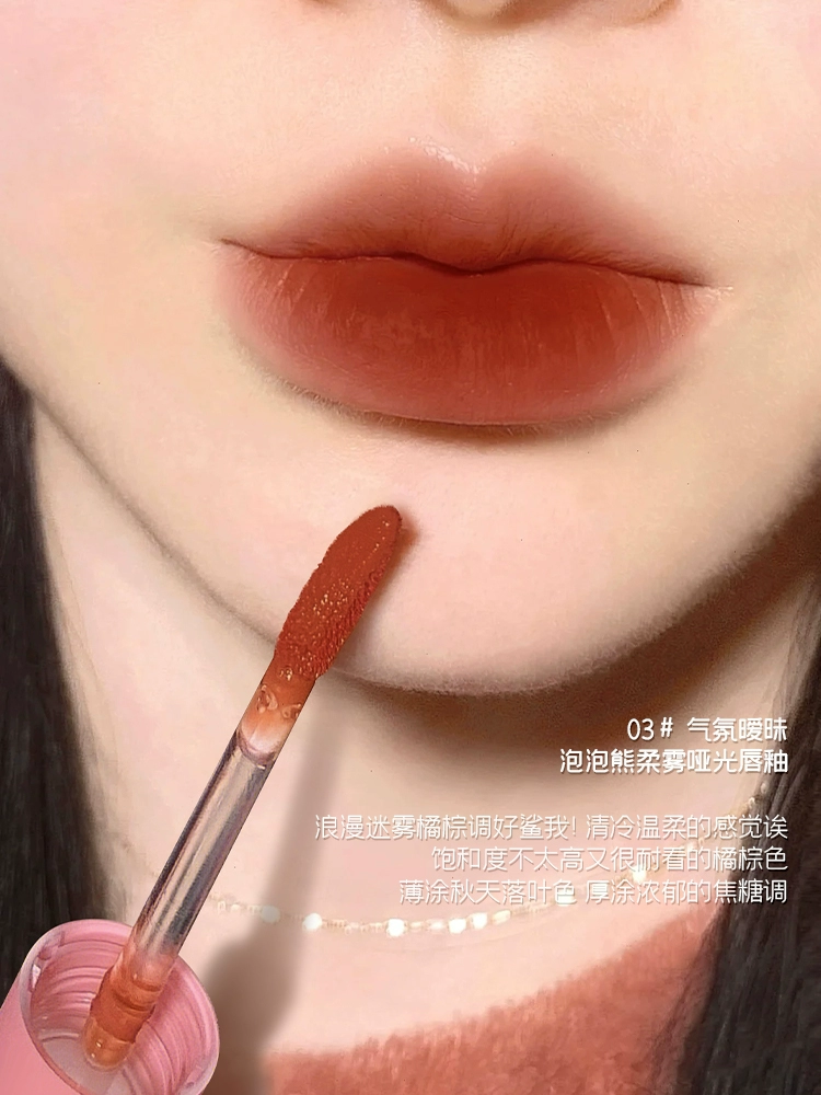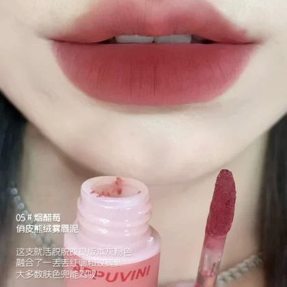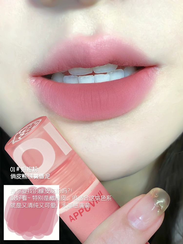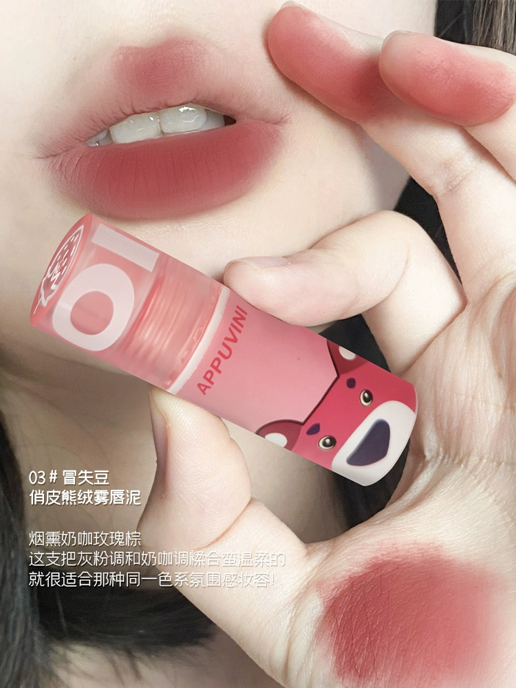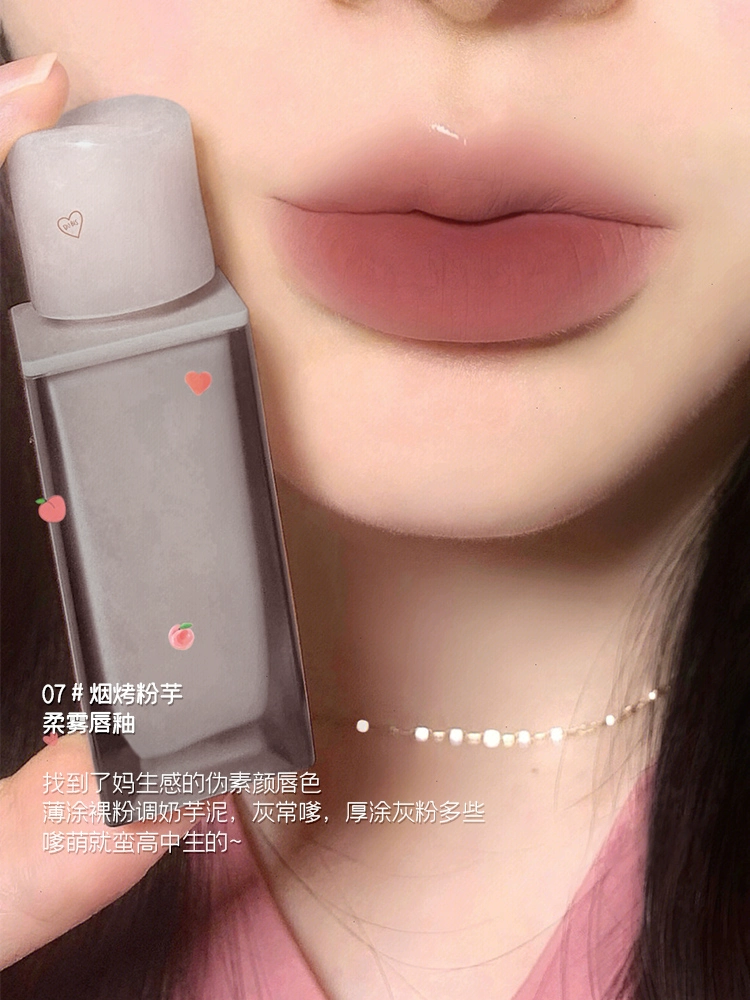 | nameOriginal | Gray pink strawberry bear matte low saturation boiling water lip glaze |