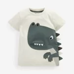 تي شيرت داخلي رمادي برقبة دائرية للأطفال نصف كم على شكل ديناصور