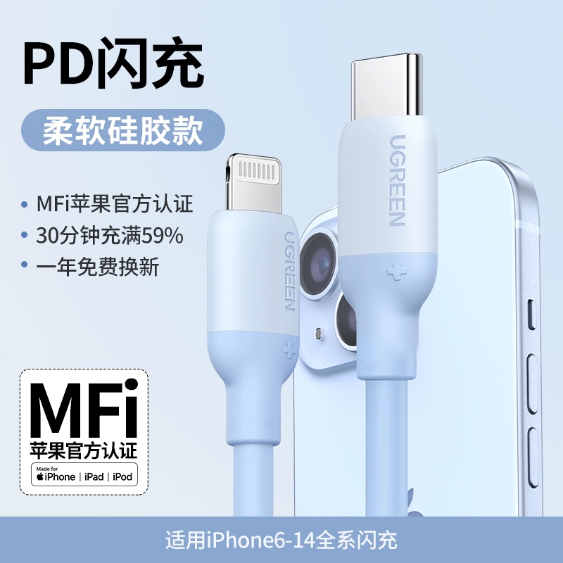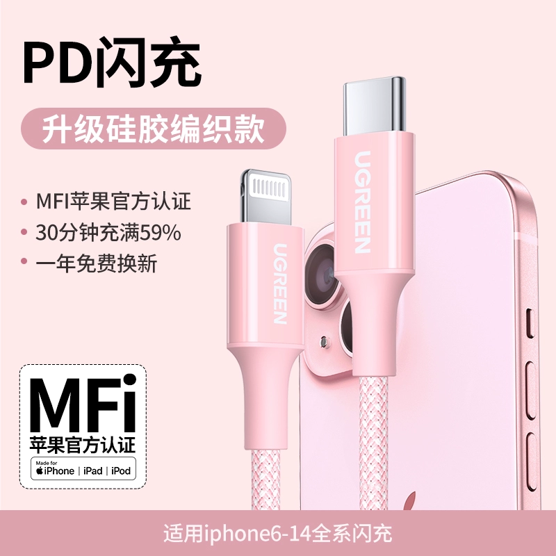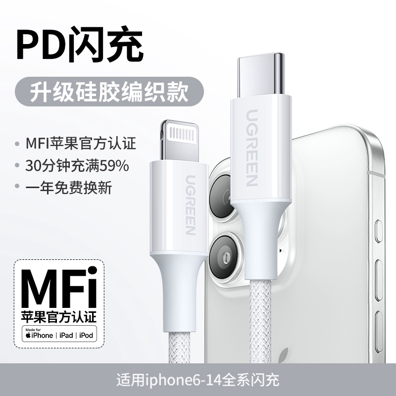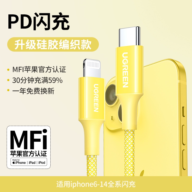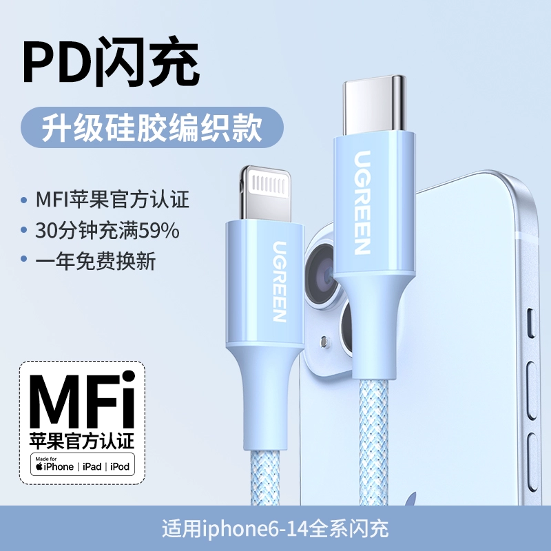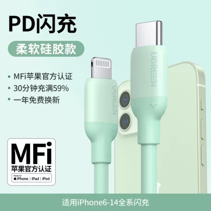 | nameOriginal | Green Alliance applicable Apple data cable iphone16pro charging cable 13pd fast charging head mfi certified 14max15plus mobile phone tablet long silicone braided lightning to typec |