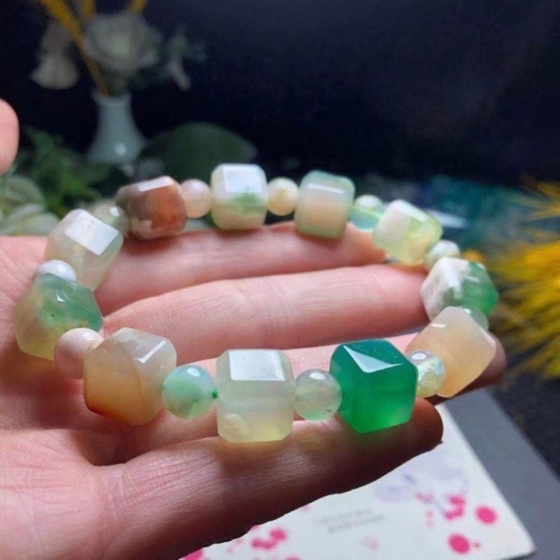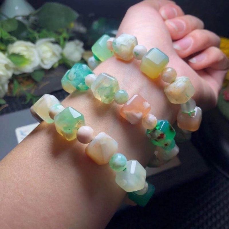 nameOriginal | Green Cherry Blossom Agate Handstring Women's Sugar Square Design Fashion Jewelry Cross-Border |