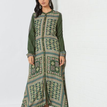 | nameOriginal | Printed A-Line Maxi Dress Green |