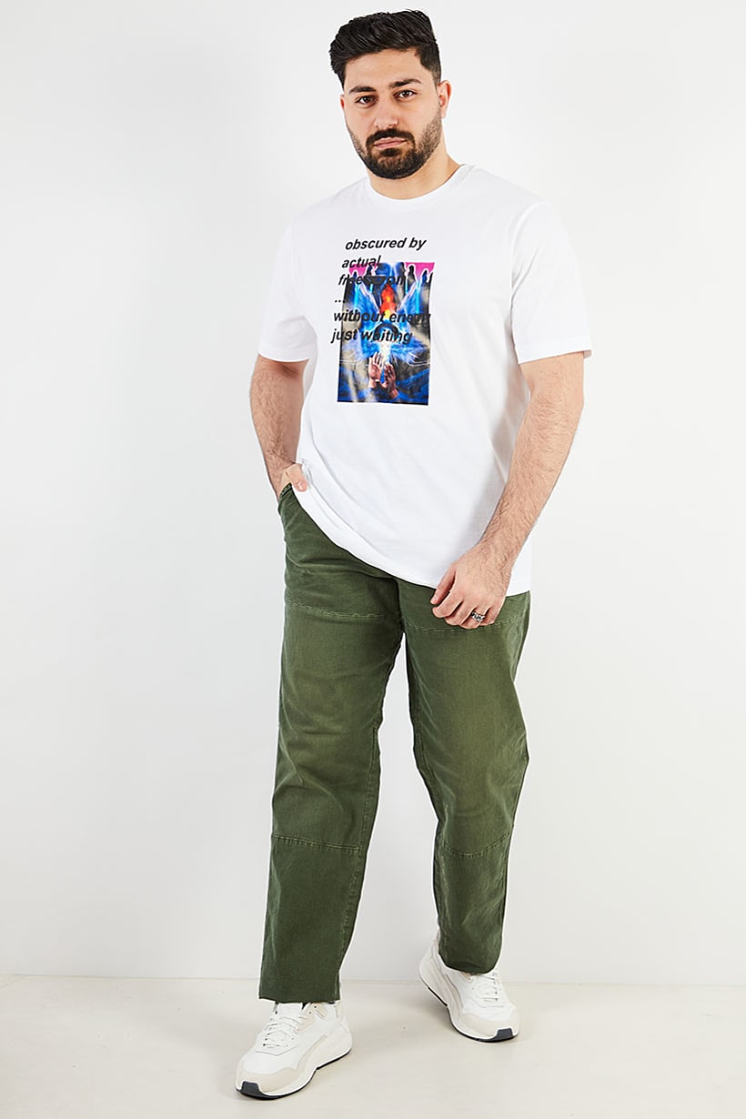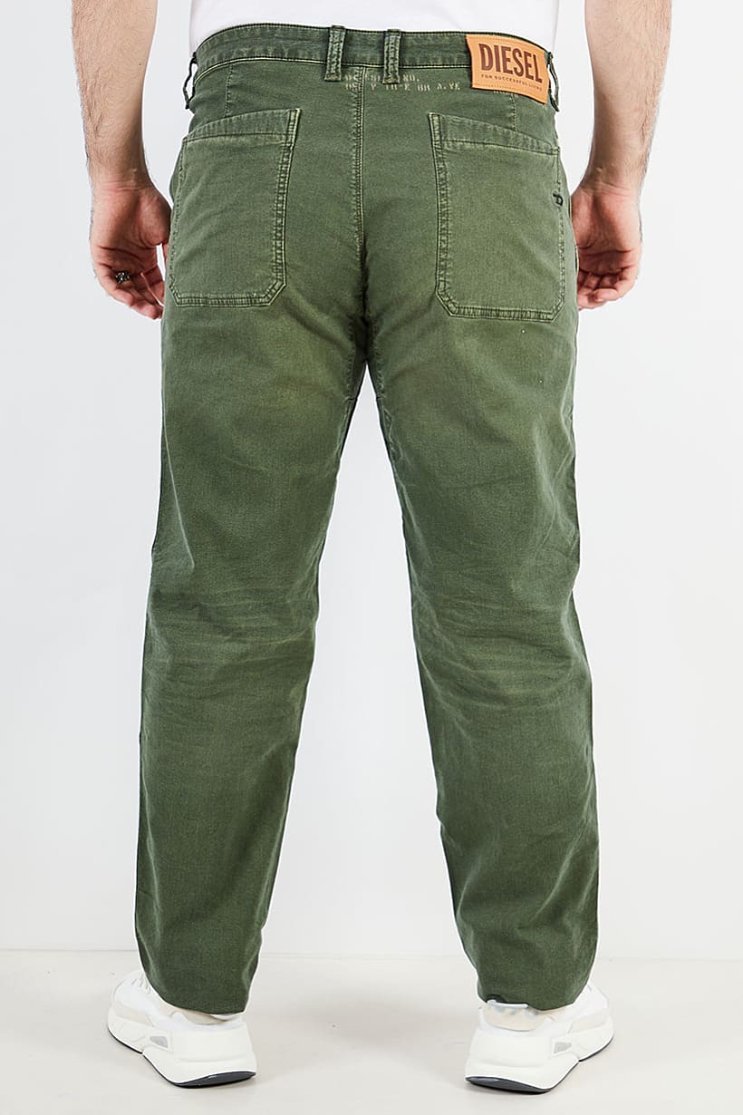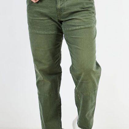 يتميز هذا البنطلون بحافة سفلية مستقيمة وقصة متوسطة الارتفاع مع خمسة جيوب لراحتك. القماش مصنوع من 97% قطن و 3% إيلاستين، مما يجعله مطاطيًا ومريحًا للارتداء. تضيف أزرار الإغلاق وحلقات الحزام إلى النمط العام للجينز. يمكن غسلها في الغسالة وتأتي باللون الأخضر المغسول بنمط رقيق. يظهر الحجم بالبوصة لسهولة الرجوع إليه.