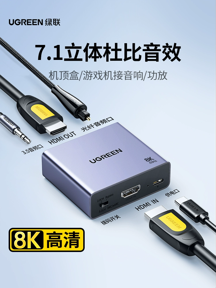 | nameOriginal | Greenline HDMI audio splitter 8K/60Hz ultra-high definition to fiber optic 3.5 headphone jack spdif digital analog audio output audio power amplifier converter audio and video separation transfer 5.1 channel |