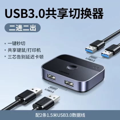 كابل بيانات محرك Dotary Cable Green Lianlian يربطان شاشات كمبيوتر في اثنين من التبديل بين اثنين من واجهة نقطة واحدة -نقطة واحدة uSB ، واحد سحب اثنين اثنين
