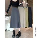 بدلة رمادية تنورة نسائية بطيات لصيف 2024 تنورة جديدة عالية الخصر على شكل حرف a لتنحيف الورك تنورة متوسطة الطول