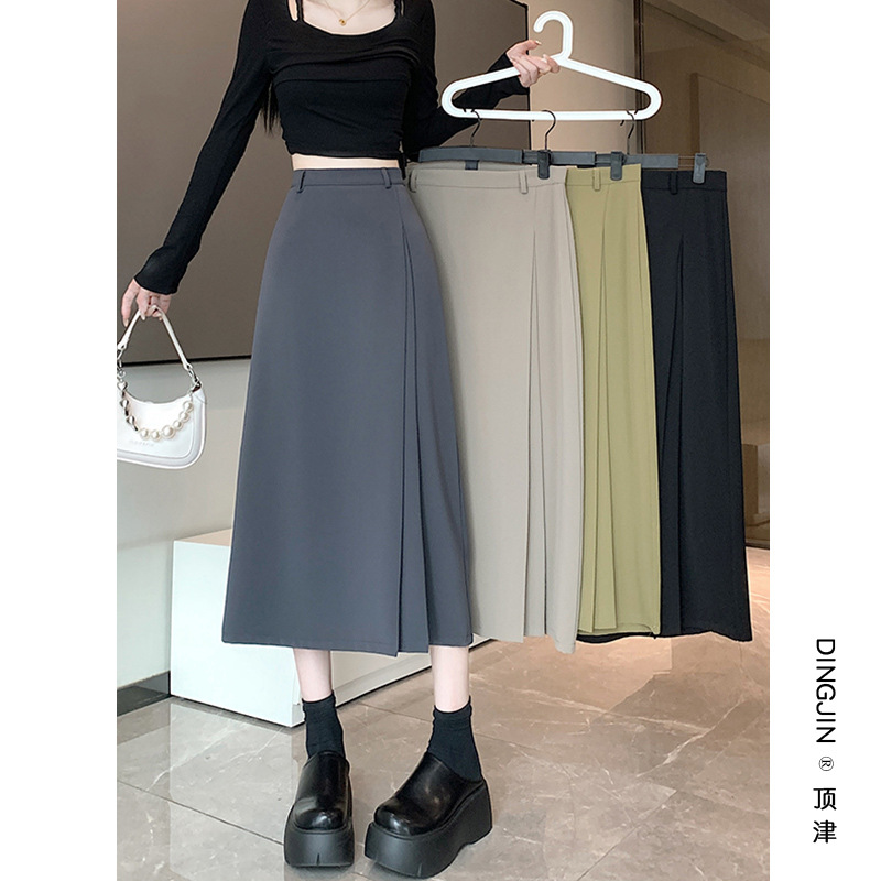 Grey Suit Pleated Skirt Women's Summer 2024 New High Waist A- Line Slimming Hip Mid-Length Skirt